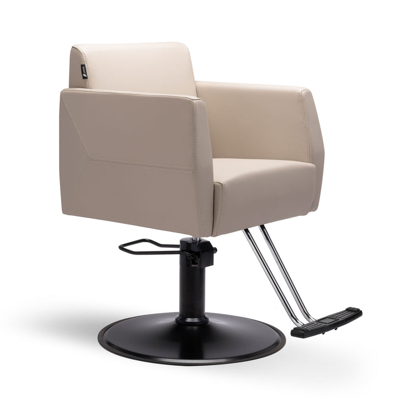 Cette chaise de coiffure rembourrée offre un design unique avec un confort inégalé. Voir aussi le bac de lavage Lea.