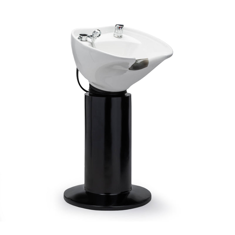 Ce lavabo sur piédestal est la solution parfaite pour le lavage de derrière ou sur le côté du client lorsque vous avez un espace restreint. Ajoutez votre choix de chaise de coiffure inclinable, chaise de barbier ou chaise de shampooing. Accueille également les clients en fauteuil roulant.